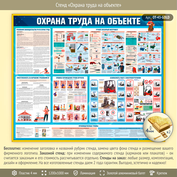 Стенд «Охрана труда на объекте» (OT-43-GOLD) в Череповце купить
