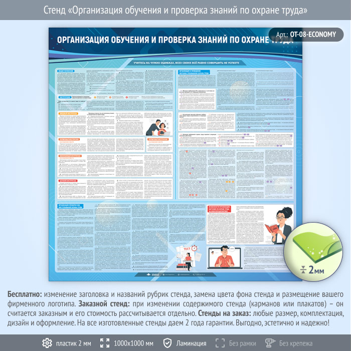 Стенд «Организация обучения и проверка знаний по охране труда» (OT-08-ECONOMY) в Череповце купить
