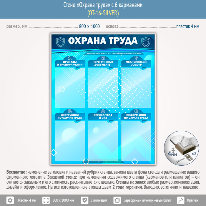 Стенд «Охрана труда» с 6 карманами (OT-16-SILVER) в Череповце купить