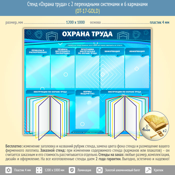 Стенд «Охрана труда» с 2 перекидными системами и 6 карманами (OT-17-GOLD) в Череповце купить