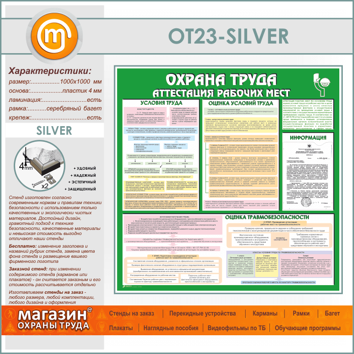 Стенд «Охрана труда. Аттестация рабочих мест» с карманом (OT-23-SILVER) в Череповце купить