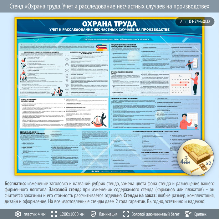 Стенд «Охрана труда. Учет и расследование несчастных случаев на производстве» (OT-24-GOLD) в Череповце купить
