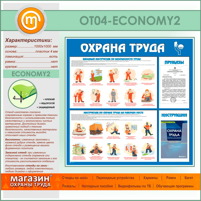 Стенд «Охрана труда» с плоским и объемным карманами (OT-04-ECONOMY2) в Череповце купить