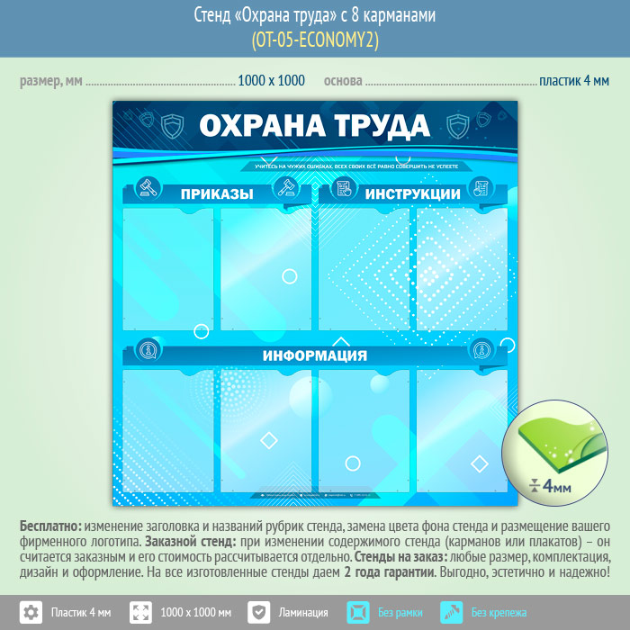 Стенд «Охрана труда» с 8 карманами (OT-05-ECONOMY2) в Череповце купить