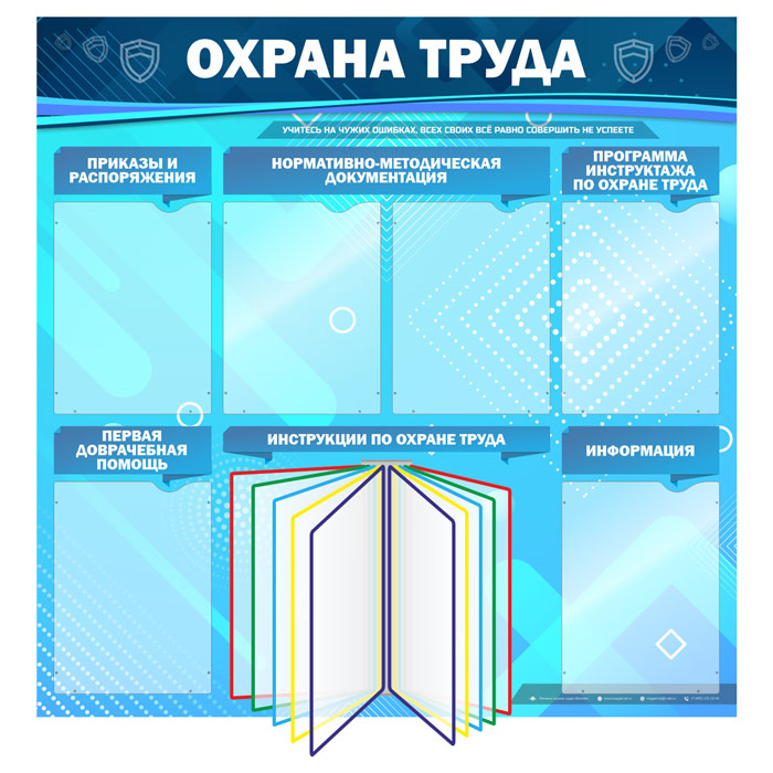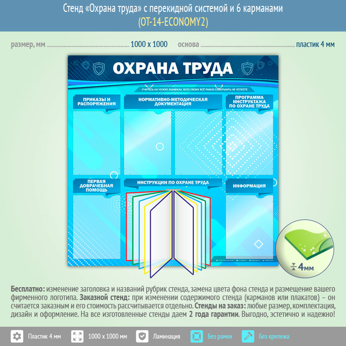 Стенд «Охрана труда» с перекидной системой и 6 карманами (OT-14-ECONOMY2) в Череповце купить