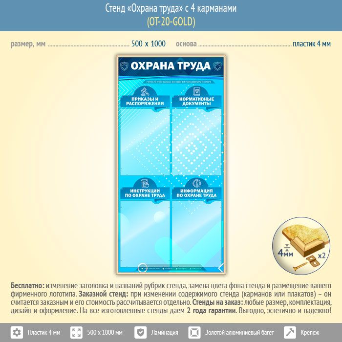 Стенд «Охрана труда» с 4 карманами (OT-20-GOLD) в Череповце купить