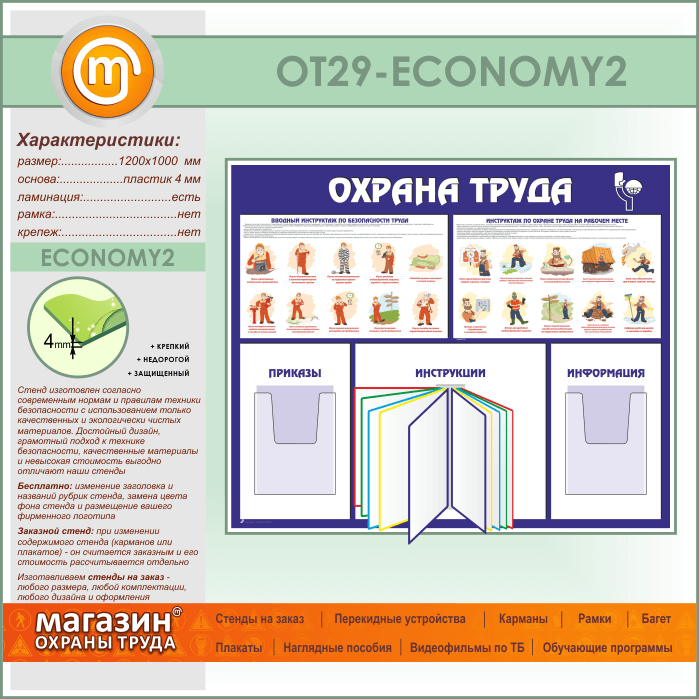 Стенд «Охрана труда» с перекидной системой и 2 объемными карманами (OT-29-ECONOMY2) в Череповце купить