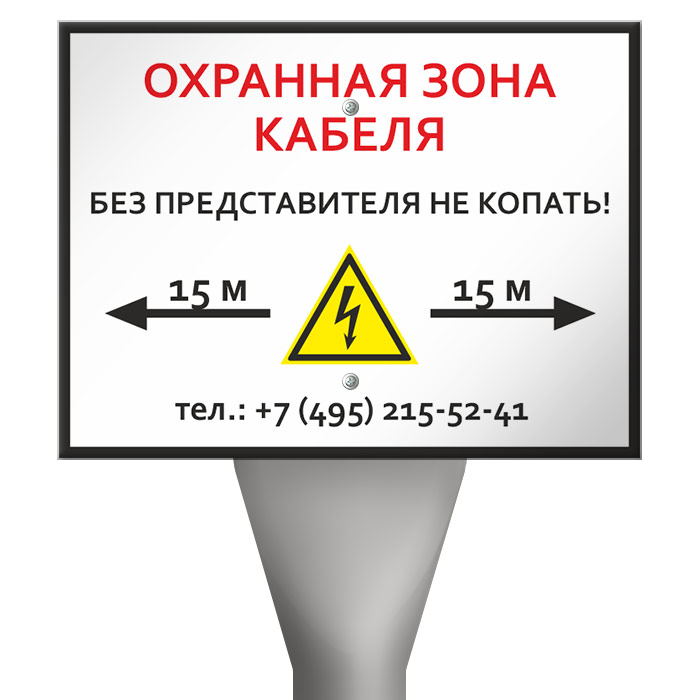 Столбик кабельный СКТ-1,6 с металлическим знаком OZK-02 «Охранная зона кабеля. Без представителей не копать» в Череповце купить