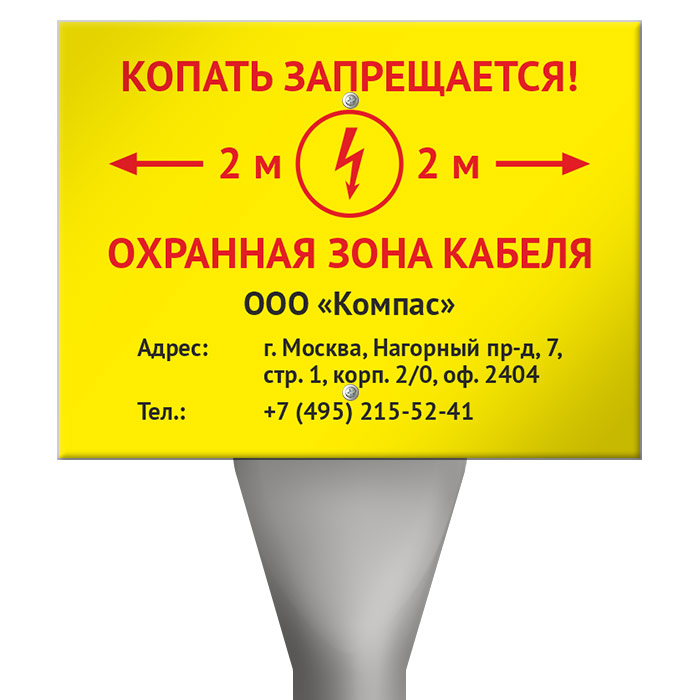 Столбик кабельный СКТ-1,6 с металлическим знаком OZK-05 «Копать запрещается» в Череповце купить