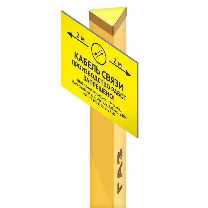 Столбик треугольный желтый h=1800 мм (сторона 130 мм) в Череповце купить