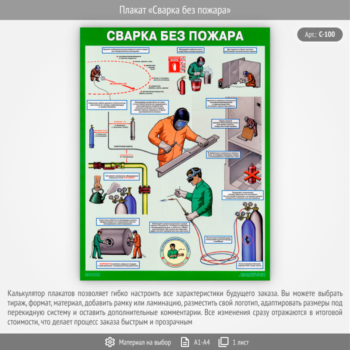 Плакат «Сварка без пожара» (С-100, 1 лист)