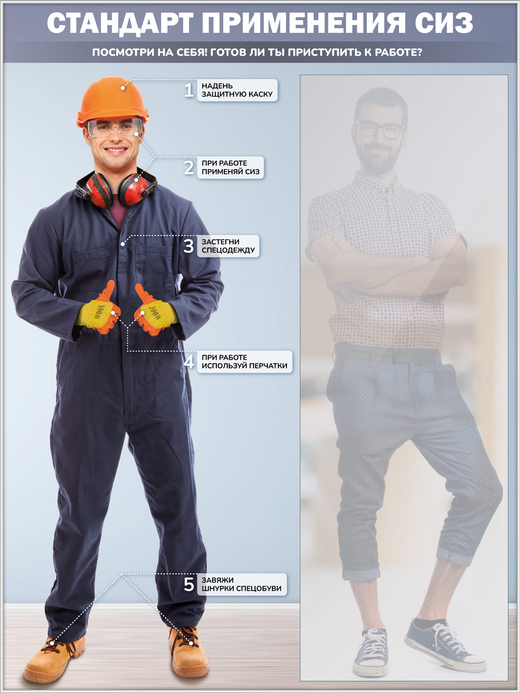Стенд для демонстрации применения СИЗ с зеркалом, 1500х2000 мм в серебряном багете (СПС-01-С) в Череповце купить