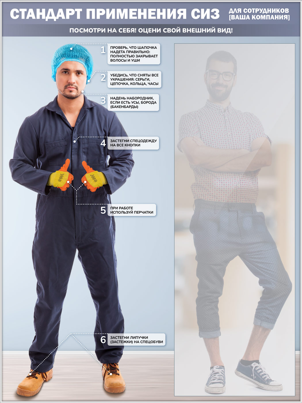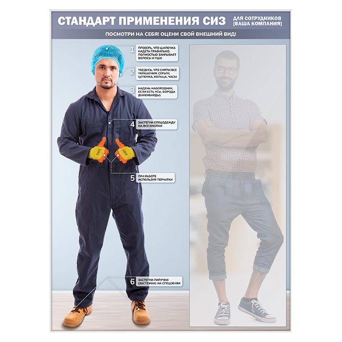 Стенд для демонстрации применения СИЗ с зеркалом, 1500х2000 мм в серебряном багете (СПС-02-С) в Череповце купить