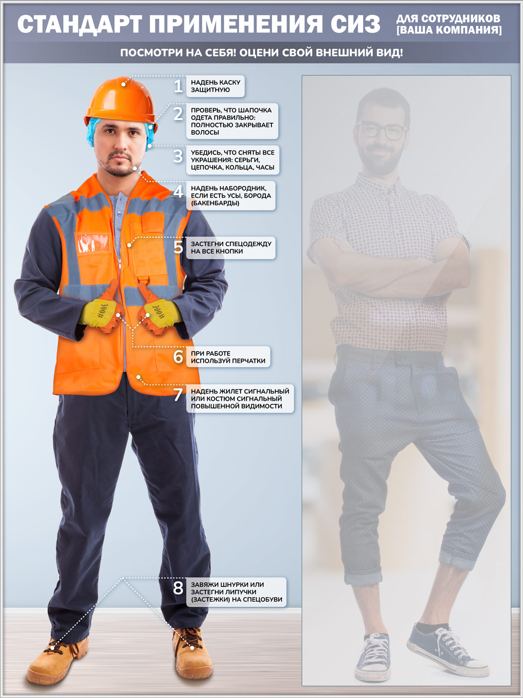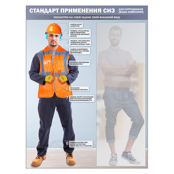 Стенд для демонстрации применения СИЗ с зеркалом, 1500х2000 мм в серебряном багете (СПС-03-С) в Череповце купить