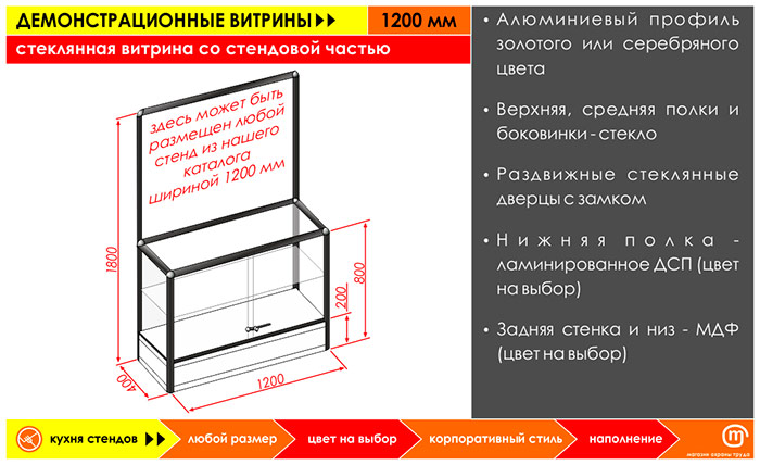 Стеклянная витрина со стендовой частью, 1200 мм в Череповце купить
