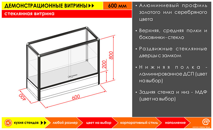 Стеклянная витрина, 600 мм в Череповце купить