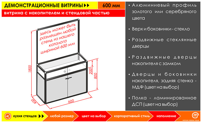 Витрина с накопителем и стендовой частью, 600 мм в Череповце купить