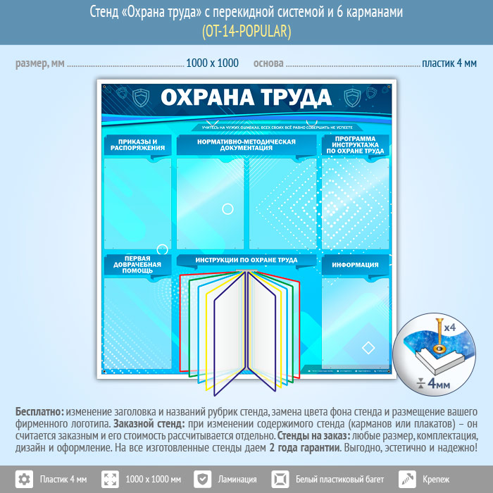 Стенд «Охрана труда» с перекидной системой и 6 карманами (OT-14-POPULAR)
