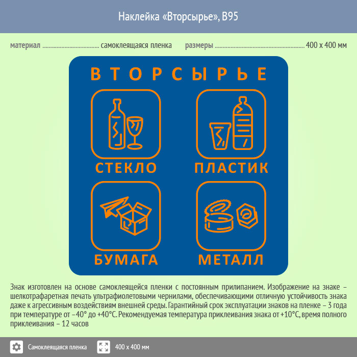 Наклейка на бак «Вторсырьё», B95 (пленка, 400х400 мм) в Череповце купить