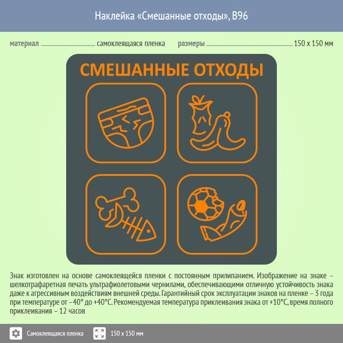 Наклейка на бак «Смешанные отходы», B96 (пленка, 150х150 мм) в Череповце купить