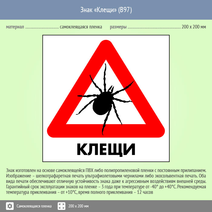 Знак «Клещи», B97 (пленка, 300х300 мм) в Череповце купить