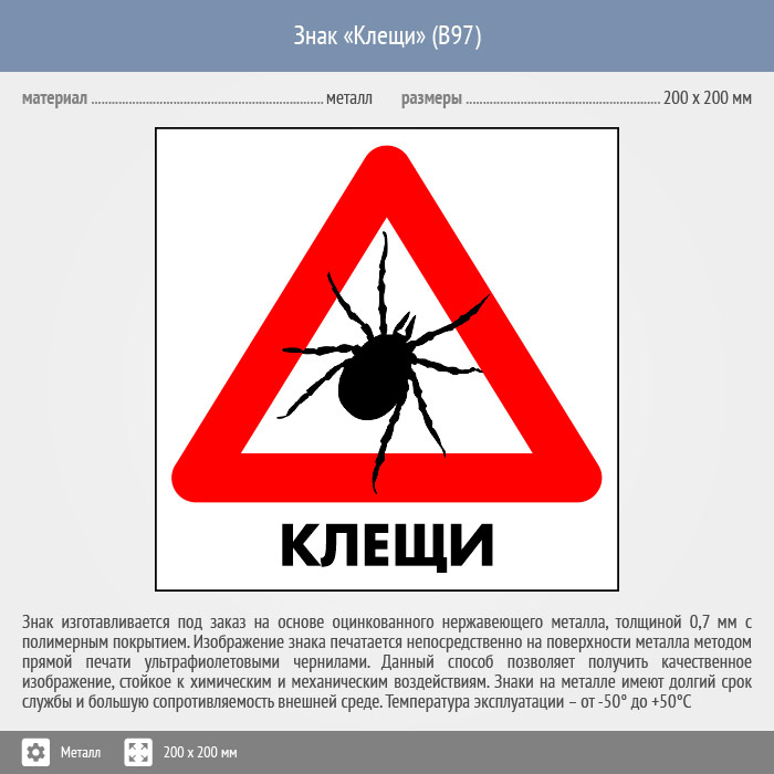 Знак «Клещи», B97 (металл, 300х300 мм) в Череповце купить