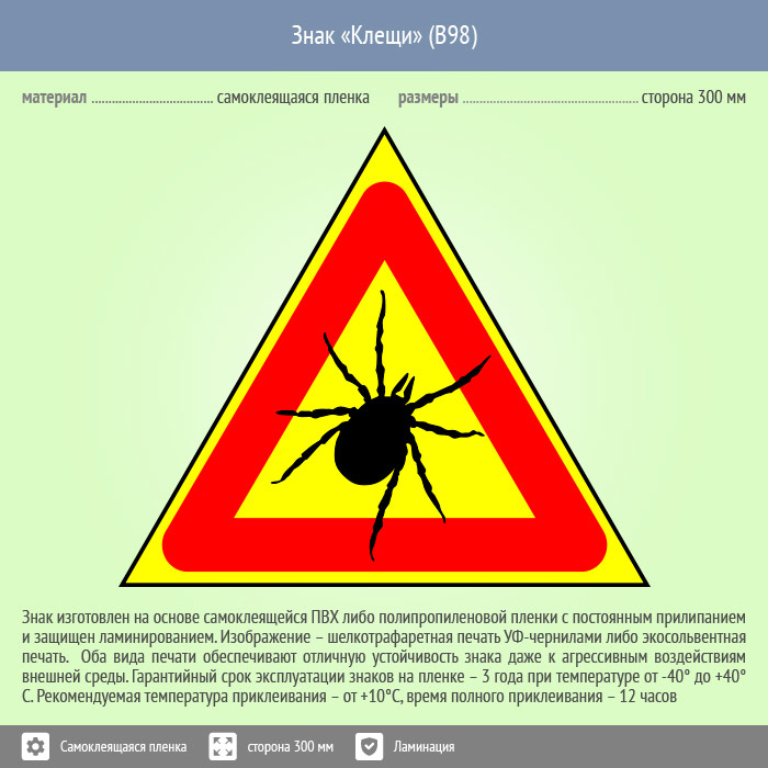 Знак «Клещи», B98 (пленка c ламинированием, сторона 200 мм) в Череповце купить