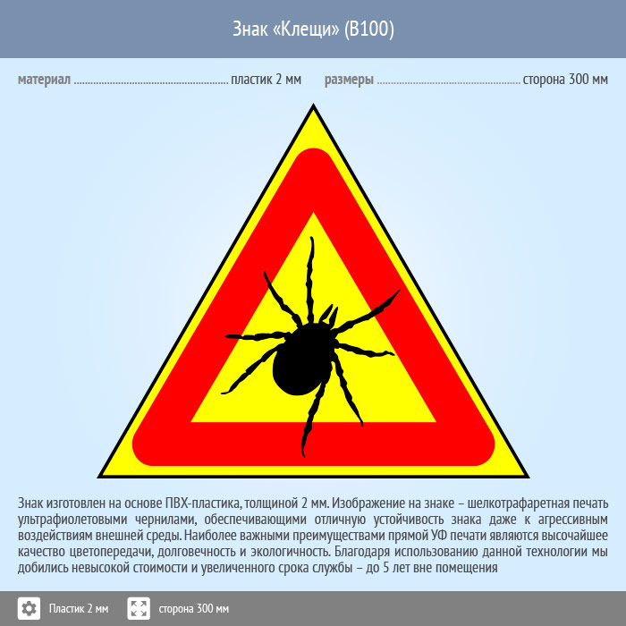 Знак «Опасно! Клещи», B100 (пластик, сторона 200 мм) в Череповце купить