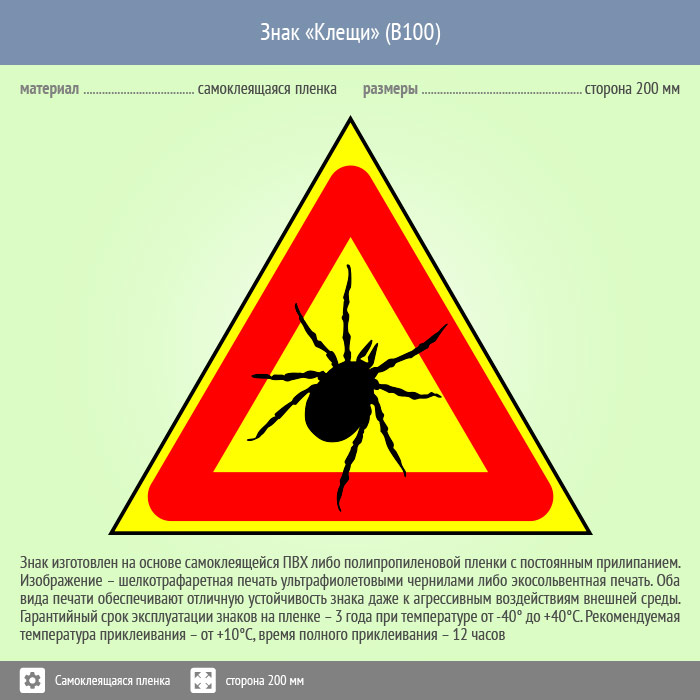 Знак «Опасно! Клещи», B100 (пленка, сторона 300 мм) в Череповце купить