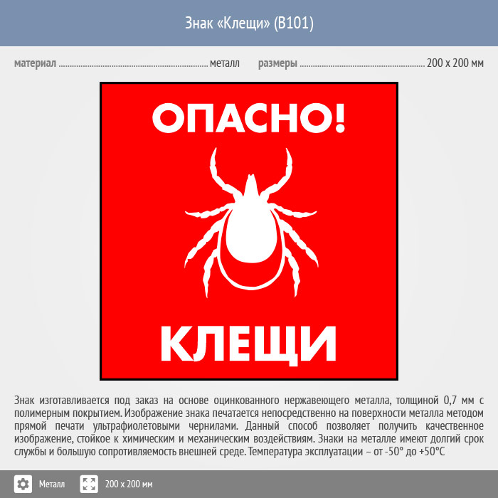Знак «Опасно! Клещи», B101 (металл, 200х200 мм) в Череповце купить
