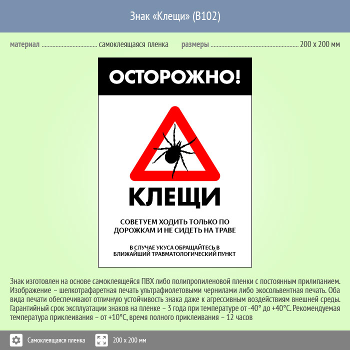 Знак «Осторожно! Клещи», B102 (пленка, 400х600 мм) в Череповце купить