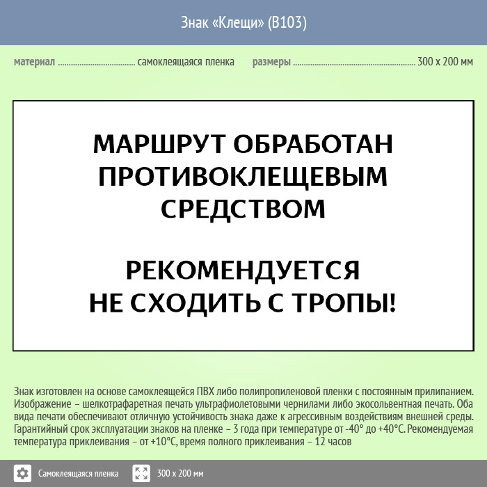 Знак «Клещи», B103 (пленка, 400х300 мм) в Череповце купить