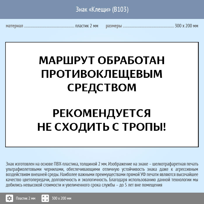 Знак «Клещи», B103 (пластик, 400х300 мм) в Череповце купить