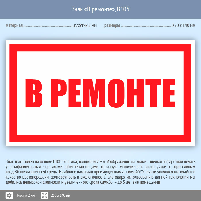Знак «В ремонте», B105 (пластик, 250х140 мм) в Череповце купить