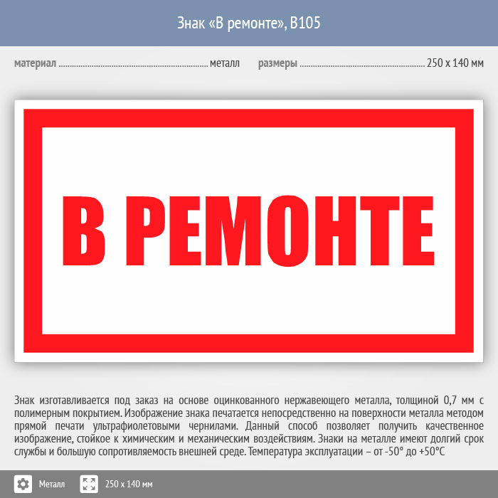 Знак «В ремонте», B105 (металл, 250х140 мм) в Череповце купить