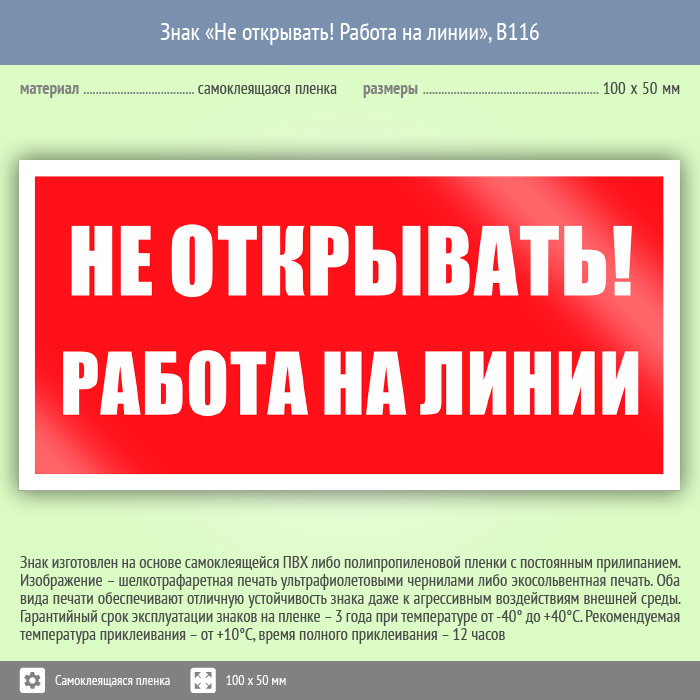 Знак «Не открывать! Работа на линии», B116 (пленка, 100х50 мм) в Череповце купить