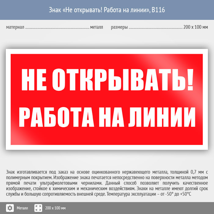 Знак «Не открывать! Работа на линии», B116 (металл, 200х100 мм) в Череповце купить