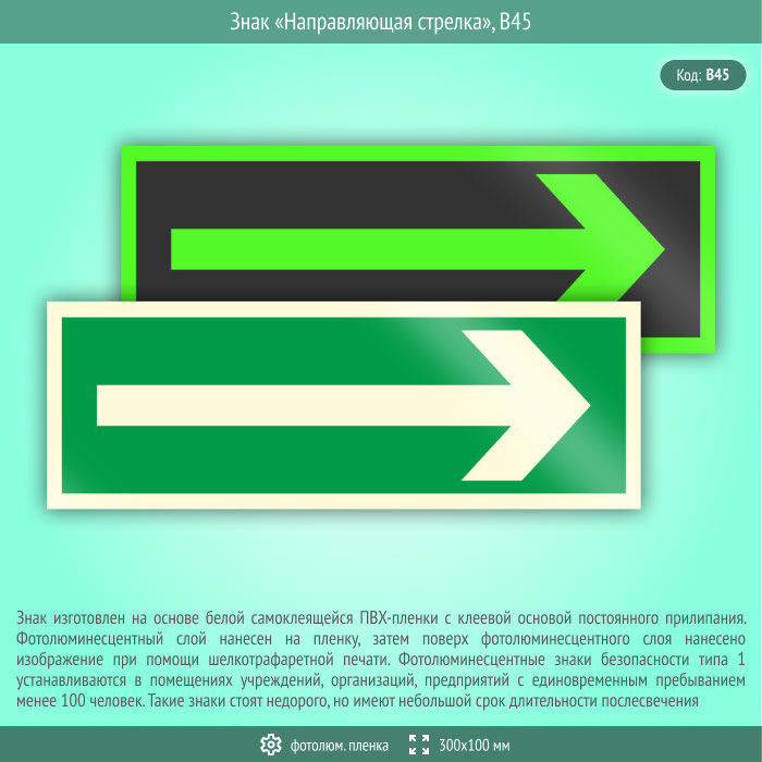 Знак «Направляющая стрелка», B45 (фотолюминесцентная пленка, 300х100 мм) в Череповце купить