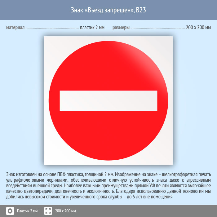 Знак «Въезд запрещен», B23 (пластик, 200х200 мм) в Череповце купить