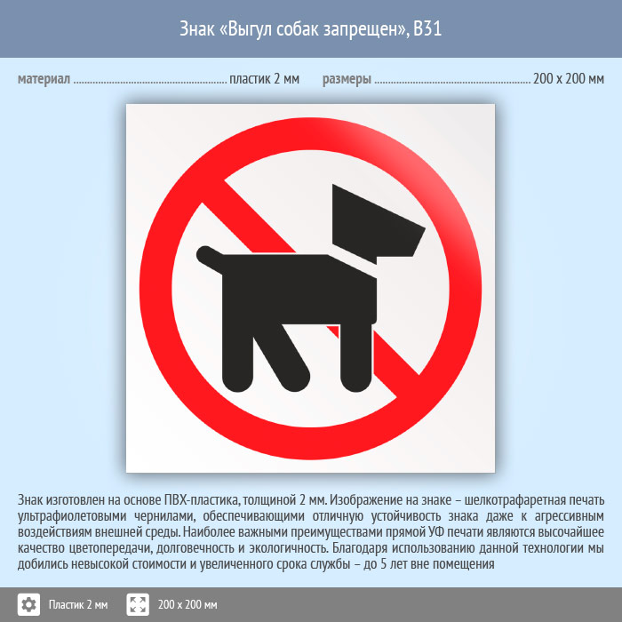 Знак «Выгул собак запрещен», B31 (пластик, 200х200 мм) в Череповце купить