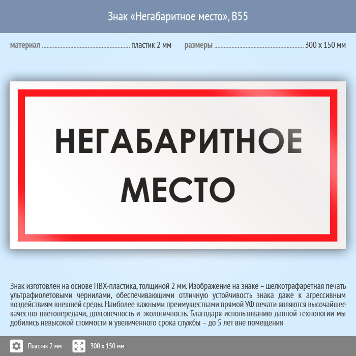 Знак «Негабаритное место», B55 (пластик, 300х150 мм) в Череповце купить
