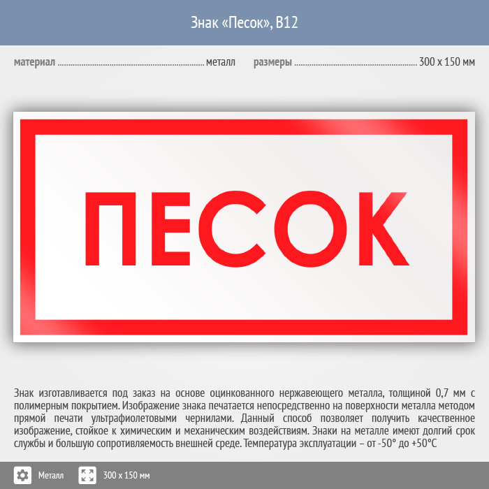 Знак «Песок», B12 (металл, 300х150 мм) в Череповце купить