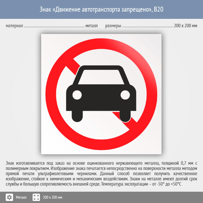 Знак «Движение автотранспорта запрещено», B20 (металл, 200х200 мм) в Череповце купить