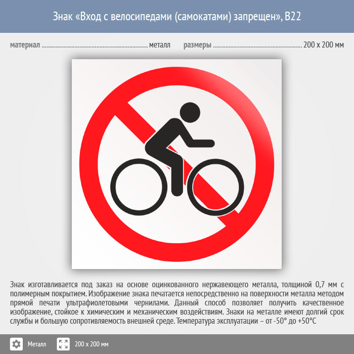 Знак «Вход с велосипедами (самокатами) запрещен», B22 (металл, 200х200 мм) в Череповце купить