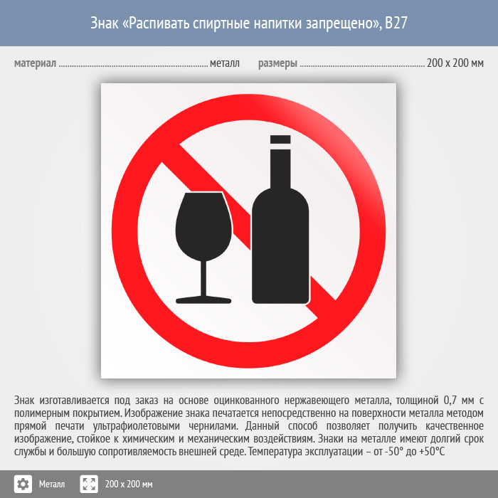 Знак «Распивать спиртные напитки запрещено», B27 (металл, 200х200 мм) в Череповце купить