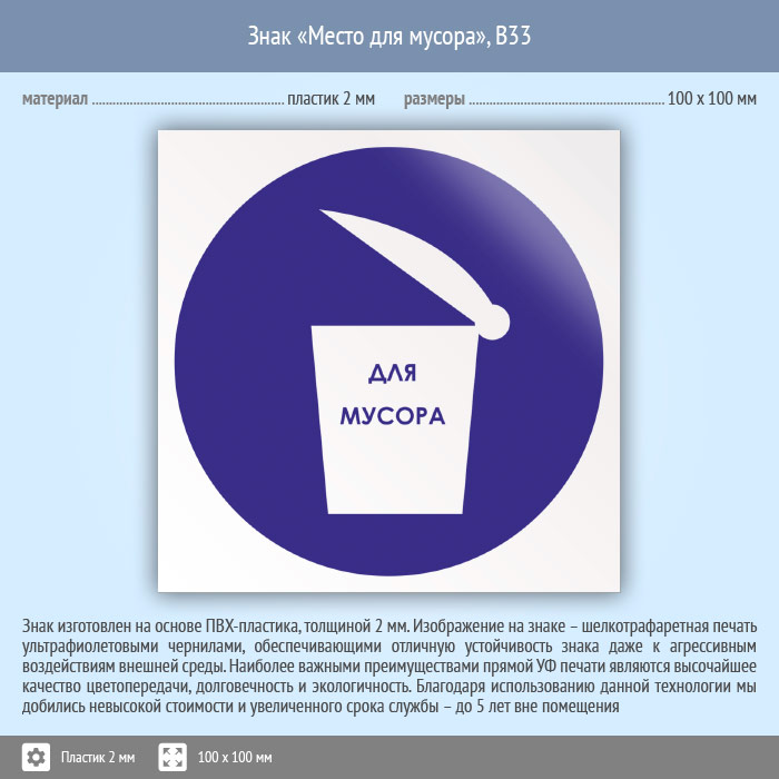 Знак «Место для мусора», B33 (пластик, 100х100 мм) в Череповце купить