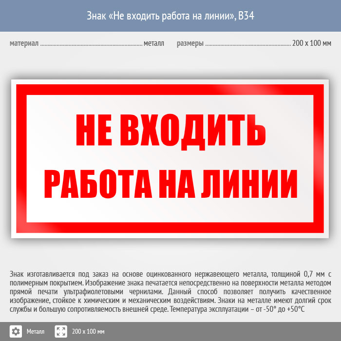 Знак «Не входить работа на линии», B34 (металл, 200х100 мм) в Череповце купить