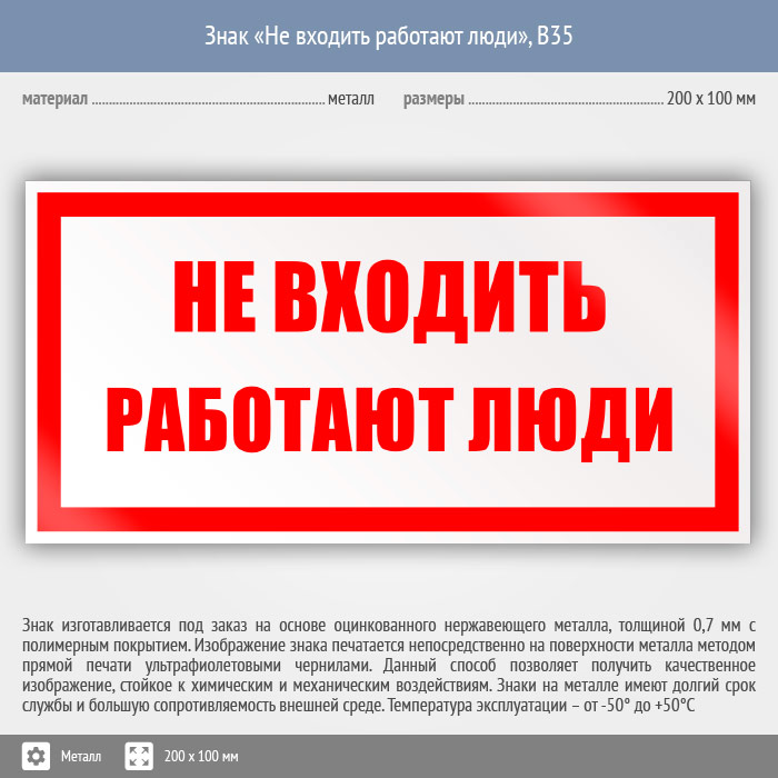 Знак «Не входить работают люди», B35 (металл, 200х100 мм) в Череповце купить