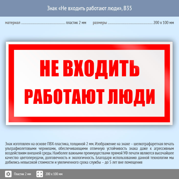 Знак «Не входить работают люди», B35 (пластик, 200х100 мм) в Череповце купить