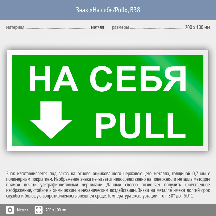 Знак «На себя/Pull», B38 (металл, 200х100 мм) в Череповце купить